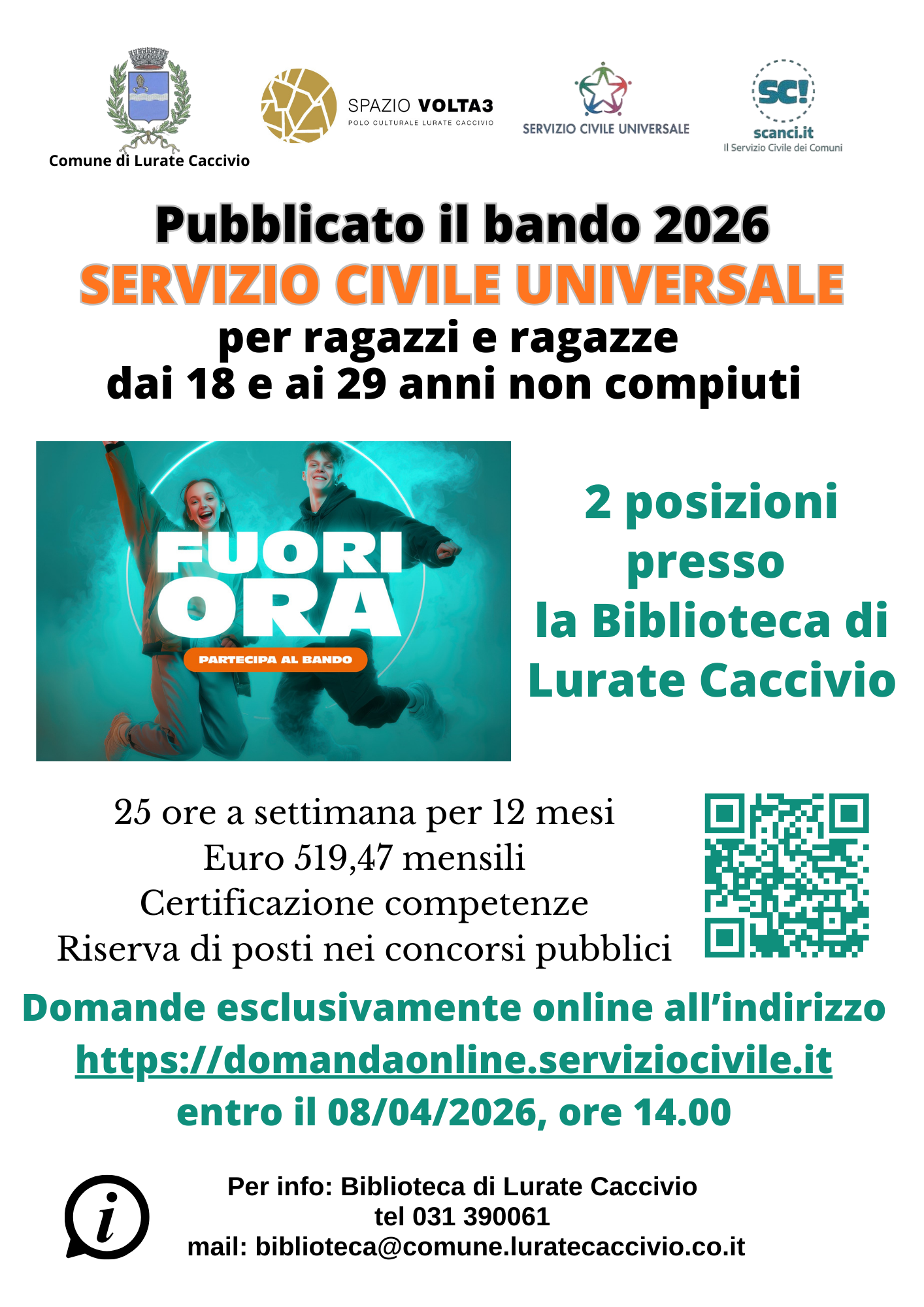 É stato pubblicato il bando di selezione di servizio civile universale (scadenza 8 aprile 2026 ore 14).