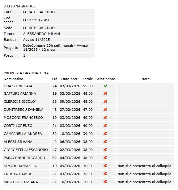 Graduatoria selezione n. 2 tirocinanti presso la biblioteca "DoteComune Avviso 11/2025":