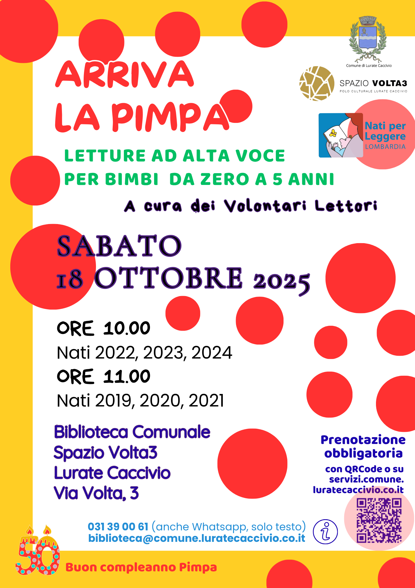 ARRIVA LA PIMPA. Appuntamento con le Letture ad alta voce per le famiglie con bimbi da 0 a 5 anni, iniziativa legata a Nati per Leggere Lombardia.