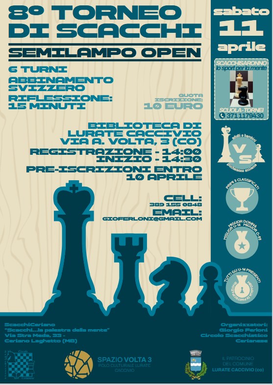 Il torneo si terrà su 6 turni con formula di abbinamento italo-svizzero, con tempo di riflessione di 15 minuti.