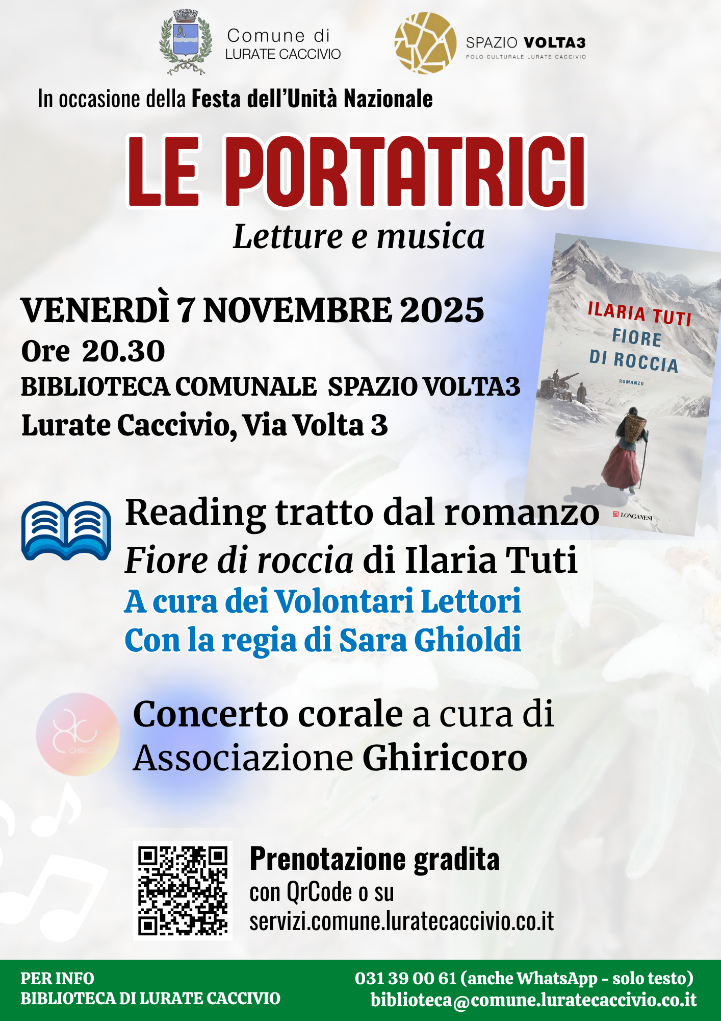 - Reading tratto dal romanzo "Fiore di roccia" di Ilaria Tuti, a cura dei Volontari Lettori, regia di Sara Ghioldi