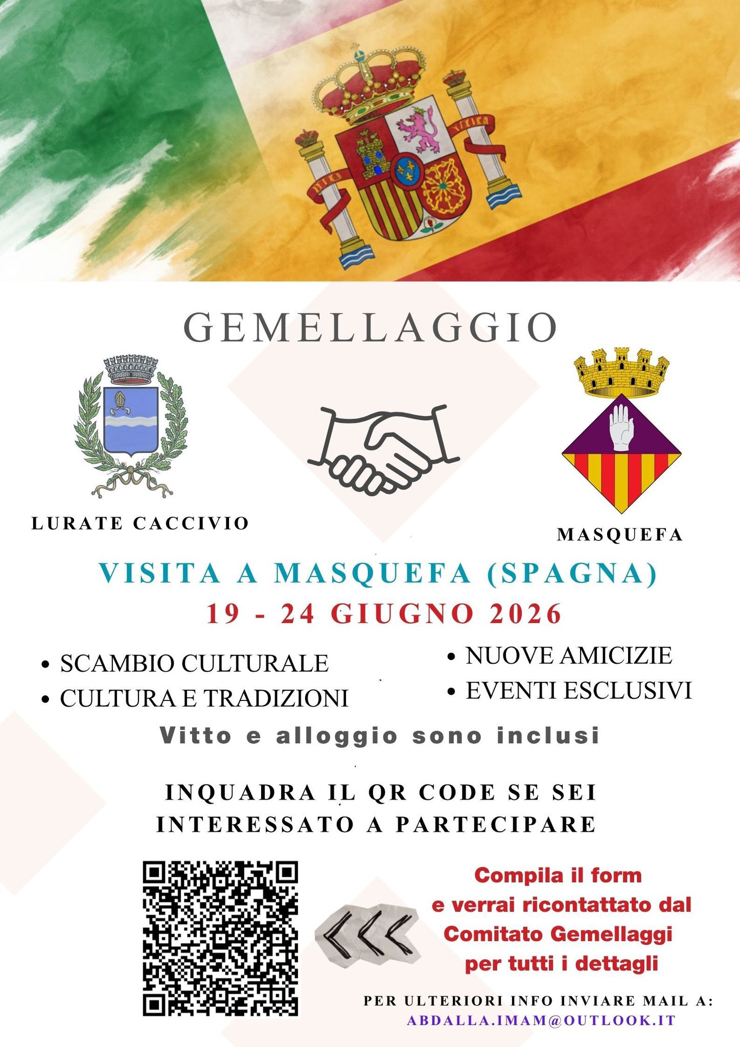 Dopo la bellissima esperienza vissuta a Lurate Caccivio nel mese di settembre 2025, i nostri amici di Masquefa ci invitano per una settimana da vivere all'insegna dell'amicizia e della condivisione: dal 19 al 24 giugno p.v.